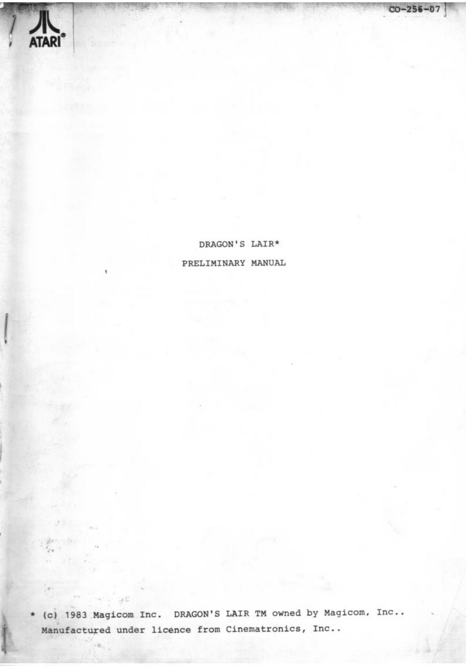 Euro Dragon's Lair Preliminary manual